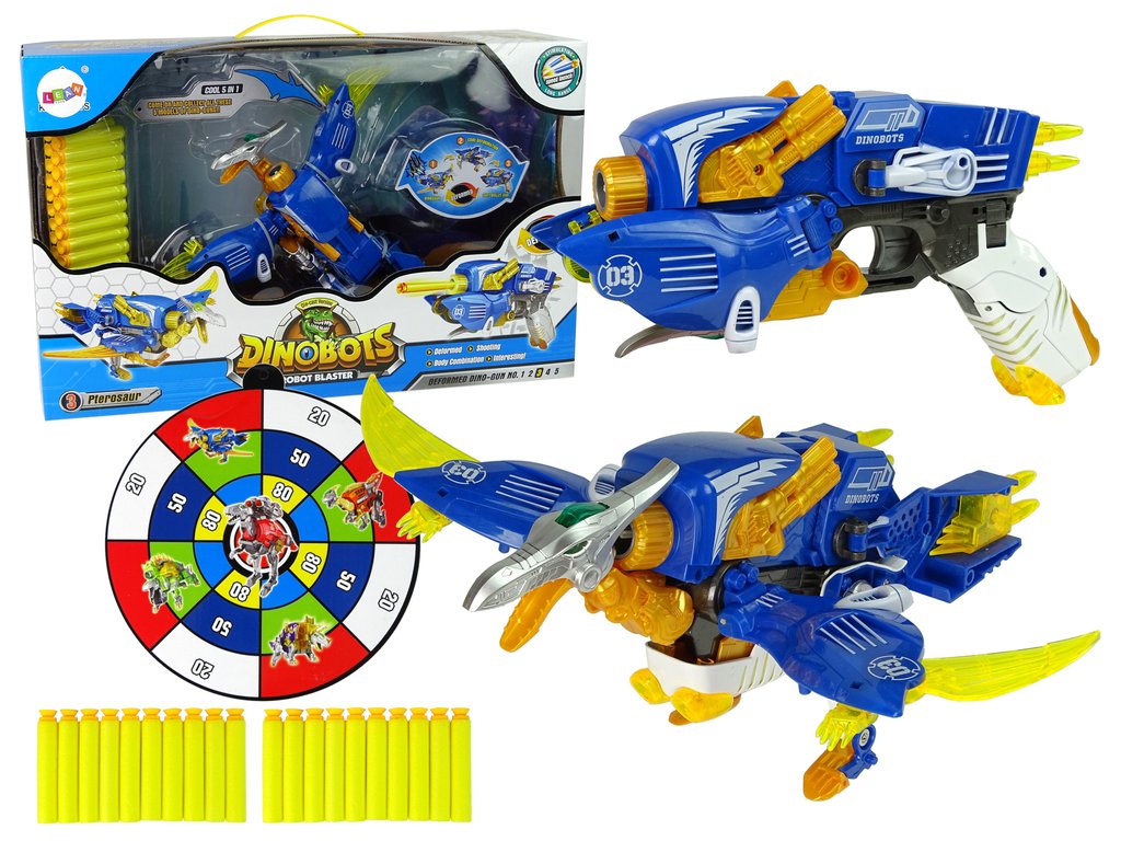 A pisztoly nagyméretű pteroszaurusztá alakítható, amely fejleszti a koordinációt, a kézügyességet és a térbeli képzelőerőt. A készletben található célpont lehetővé teszi a pontosság gyakorlását és a pontgyűjtést.