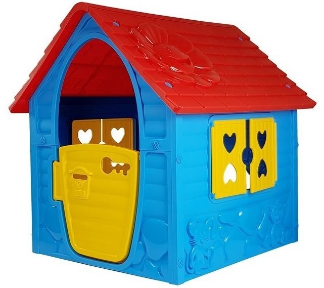 A gyerekek kertes háza napfénynek és időjárásnak ellenálló anyagból készült, így gond nélkül tárolható a szabadban, viharban és napon is. A házba egy nagy ajtón keresztül lehet bejutni, amely minden probléma nélkül szélesre nyílik. A ház oldalain nagyméretű, nyitható redőnnyel ellátott ablakok vannak. A hátsó fal alsó részén kis bejárat található egy macskának vagy kutyának, ami elhelyezkedéséből adódóan megfelelő légáramlást tesz lehetővé a ház alsó részeiben.